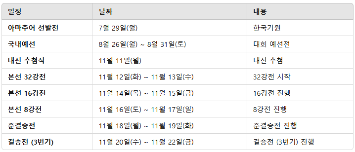 또한, 32강 대진 추첨은 대회 전날인 11일에 진행되어 예측불가한 승부가 펼쳐질 것으로 기대됩니다.