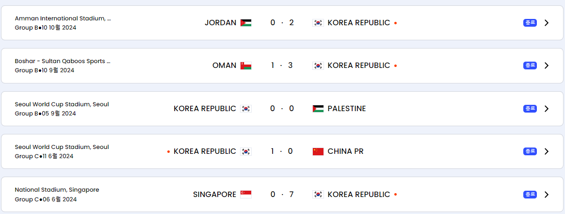 | 2024년 11월 20일 | 02:00 | 대한민국 vs 팔레스타인 |